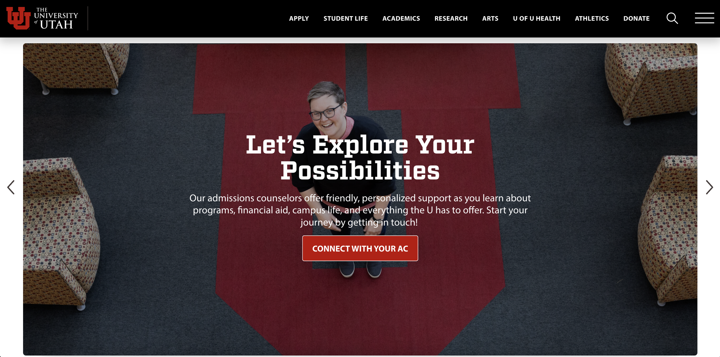 As Senior Content Writer for one of the nation's leading public universities, I create the messaging that introduces students to their future campus and inspires them to say “yes” to the U of U. Across all formats, including video scripts, print materials, magazines, multi-stage email campaigns, social media content, and beyond, my writing inspires action, reflects the institution’s voice, and welcomes prospective students into their next big adventure.